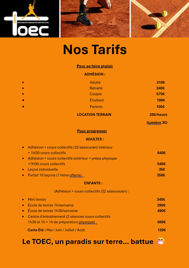 Une formule ADHESION + COURS COLECTIFS qui vous permet de jouer à volonté avec un membre du club sans supplément de location de terrain plus 32 séances de cours collectifs d'1H30